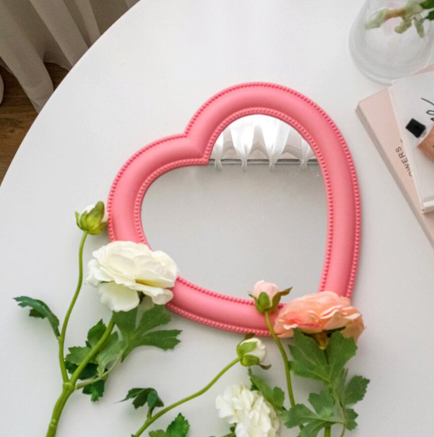 【商品名】韓国カフェ風 ピンクハートミラー[tk0085]