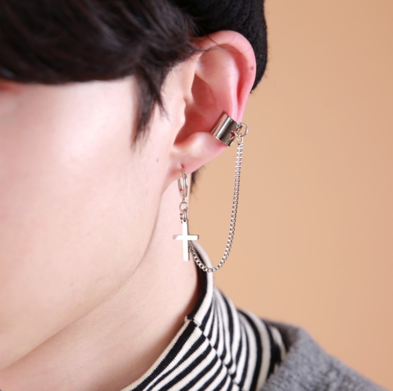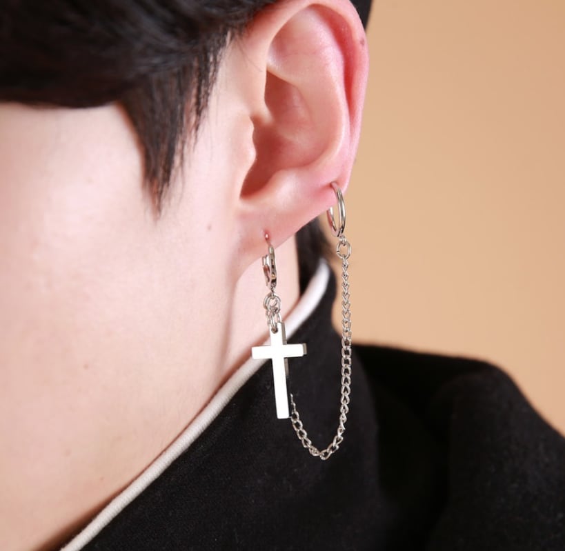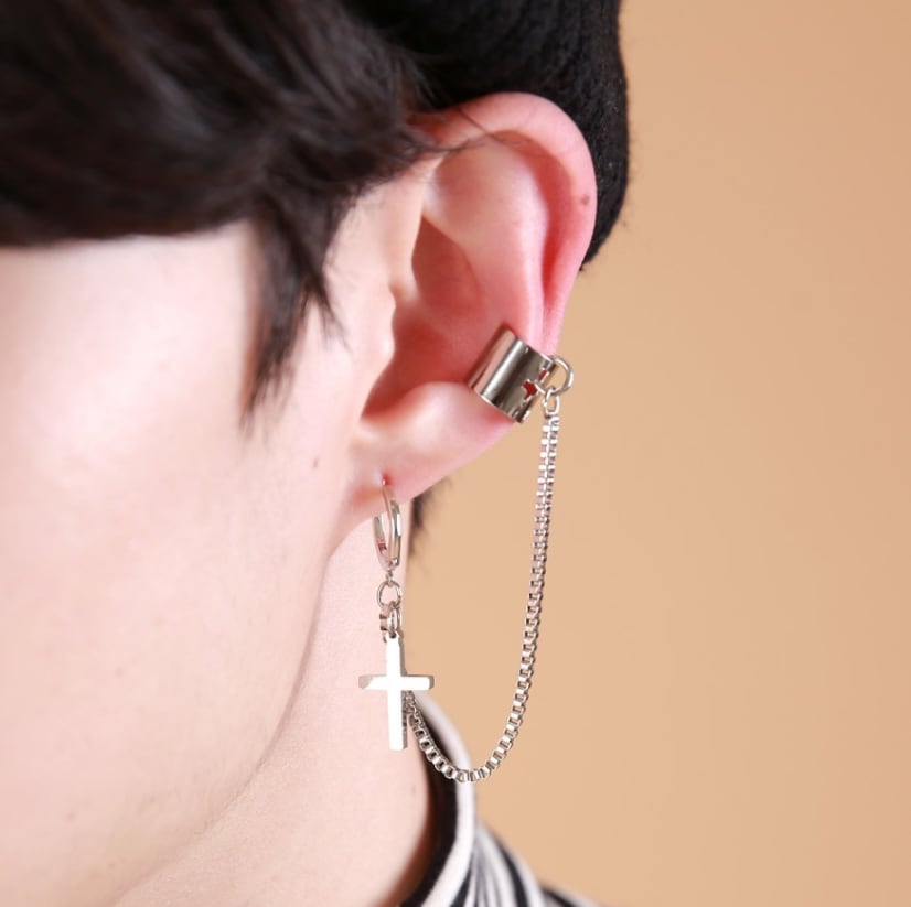 韓国■メンズ■チェーン連結 イヤーカフ ピアス